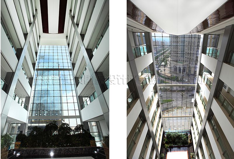 建筑體型:A區(qū)、B區(qū)一至四層為一個(gè)整體,內(nèi)部根據(jù)不同功能劃分平面。A區(qū)主樓平面呈矩形,B區(qū)主樓平面呈橄欖形,建筑立面窗采用玻璃幕墻及矩形窗的分隔方式,實(shí)體墻分為掛貼米色陶土板,立面豎向線(xiàn)條為鋁合金象牙白氟碳涂膜,立面設(shè)計(jì)手法現(xiàn)代、簡(jiǎn)潔、方正、大氣,達(dá)到良好的視覺(jué)效果,幕墻與實(shí)體墻比例劃分恰當(dāng),米色陶土板墻面分格細(xì)膩,具有高品質(zhì)現(xiàn)代辦公建筑的特征,成為西寧海湖新核心區(qū)有特點(diǎn)的標(biāo)志建筑。